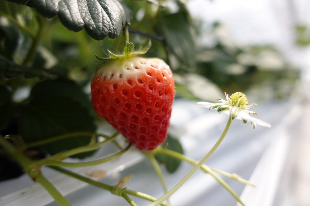 一季成り品種は、低温にならないと花がつかないため、冬から春の低温の時期にしか収穫できません。それに比べ、夏イチゴは一季なりとは違った「四季なり」という品種を用いています。「四季なり」品種は「一季なり」品種と異なり、高温や日照時間が長くても花を咲かせ実をつけるため、夏でもイチゴを栽培することができます。